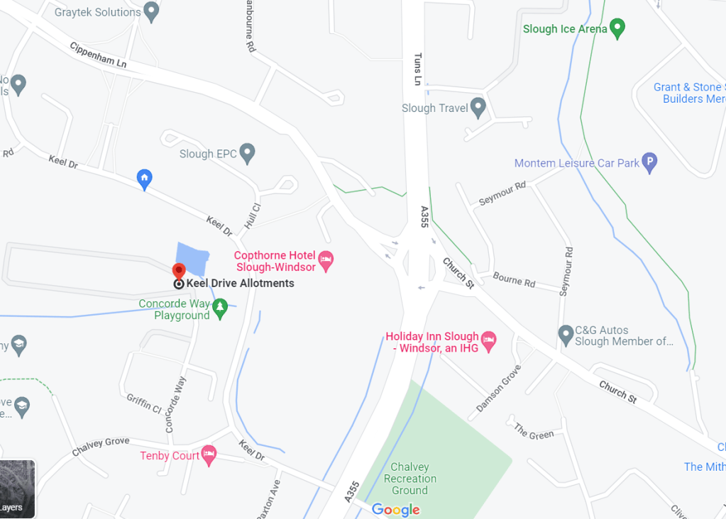 Keel Drive Allotments are situated at the very end of Concorde Way after approaching the large Gates adjacent to the Concorde Way Playground, which can be found off Keel Drive if arriving from Cippenham Lane.